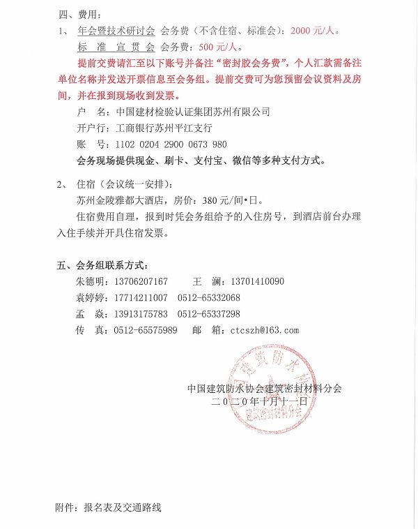 关于召开2020年中国建筑防水协会建筑密封材料分会年会暨技术研讨会的通知